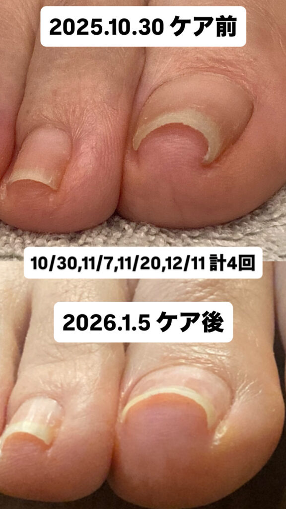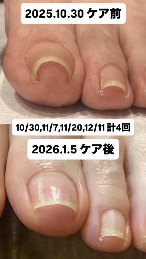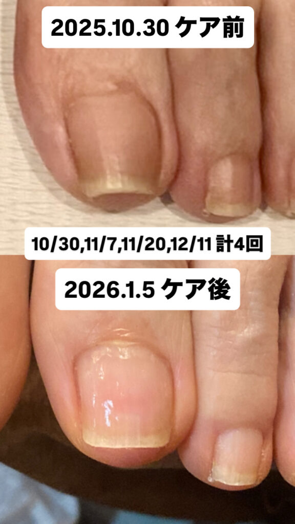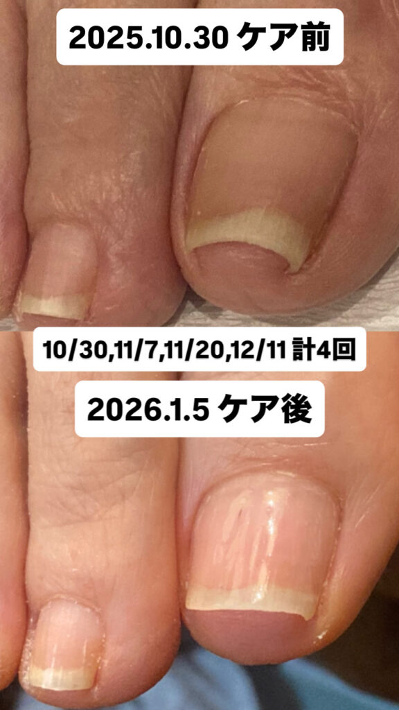 爪に負担の少ないゆっくりとした効果ですが、直後に痛みが取れる方もおられます。